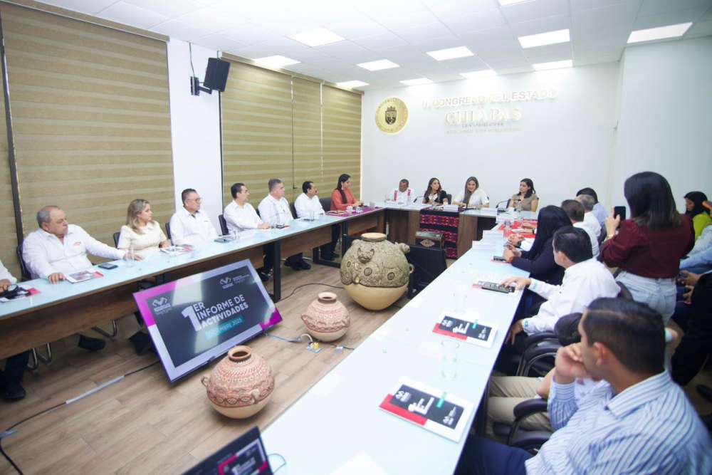 Tuxtla Gutiérrez, Chiapas; 18 de diciembre de 2025.- En cumplimiento al mandato constitucional del Artículo 63 de la Constitución Política del Estado de Chiapas; 28 y 29 fracción 13 de la Ley Orgánica de la Administración Pública de Chiapas, Anakaren Gómez Zuarth, secretaria de Infraestructura, compareció ante la Comisión de Desarrollo Urbano y Obra Pública, que preside la diputada Alejandra Gómez Mendoza, para ampliar la glosa del Primer Informe de Gobierno.